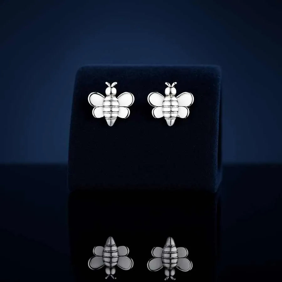 925 Sterling Silver Bee Stud Earrings | Rhodium Plated Cute Insect Design for Women & Girls