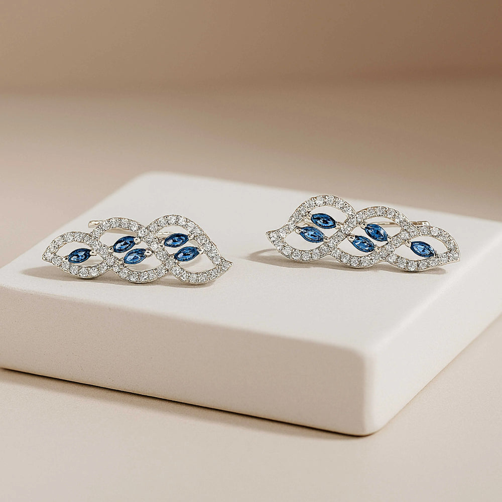 925 Sterling Silver Rhodium Plated Blue CZ Leaf Ear Cuffs for Women
