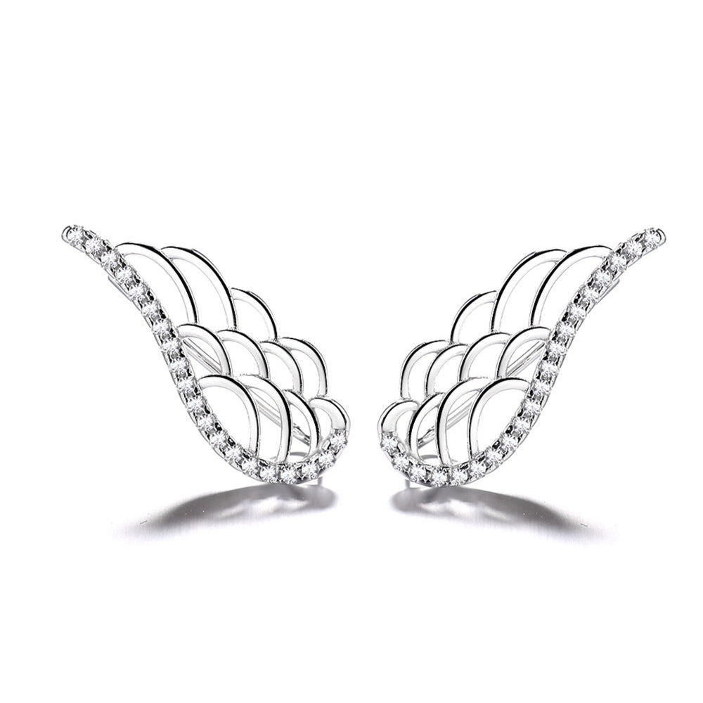925 Sterling Silver Rhodium Plated CZ Angel Wing Ear Cuffs