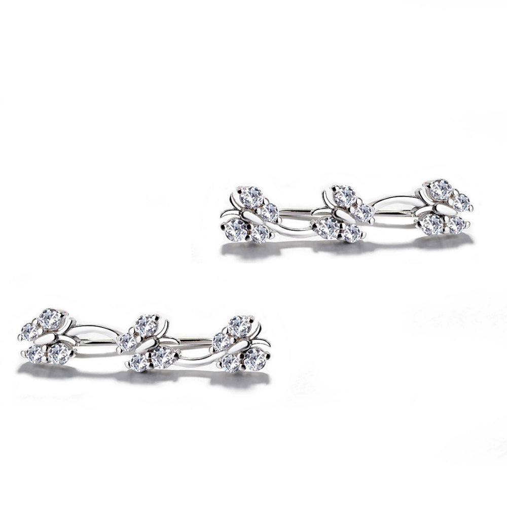 925 Sterling Silver Rhodium Plated CZ Butterfly Vine Ear Cuffs for Women