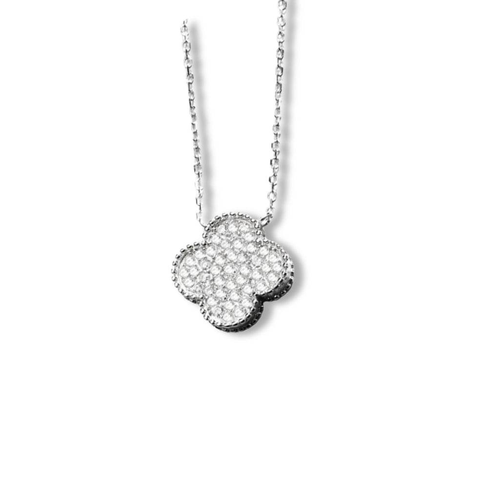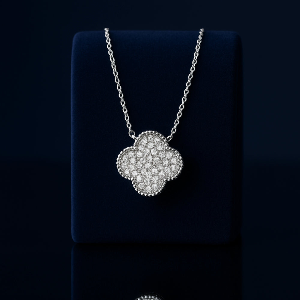 925 Sterling Silver Rhodium Plated CZ Clover Pendant Necklace