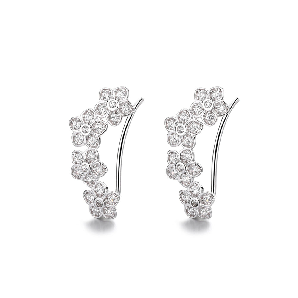 925 Sterling Silver Rhodium Plated CZ Flower Ear Cuffs for Women