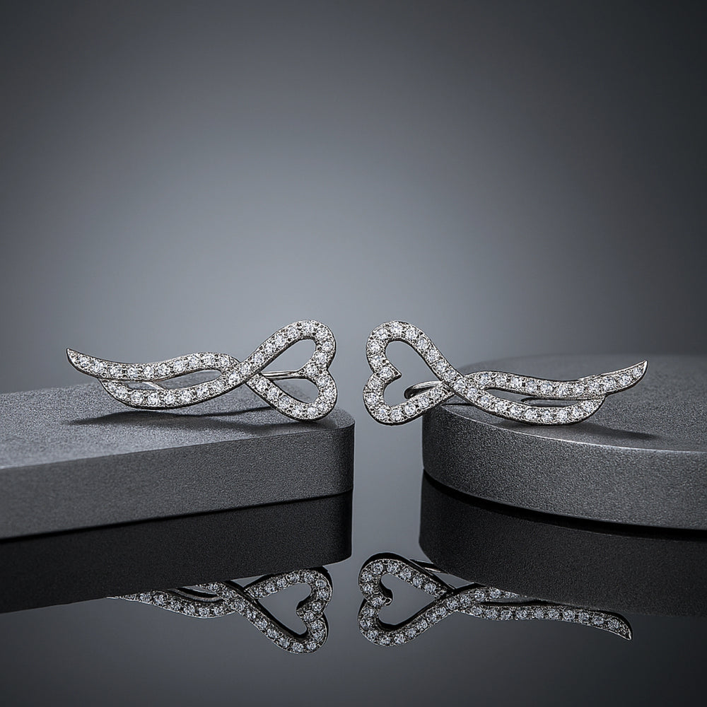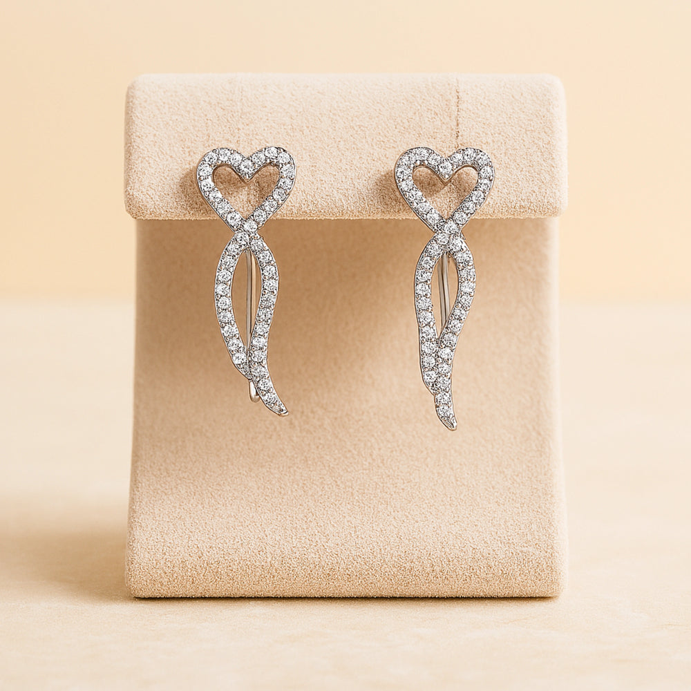 925 Sterling Silver Rhodium Plated CZ Heart Design Ear Cuffs