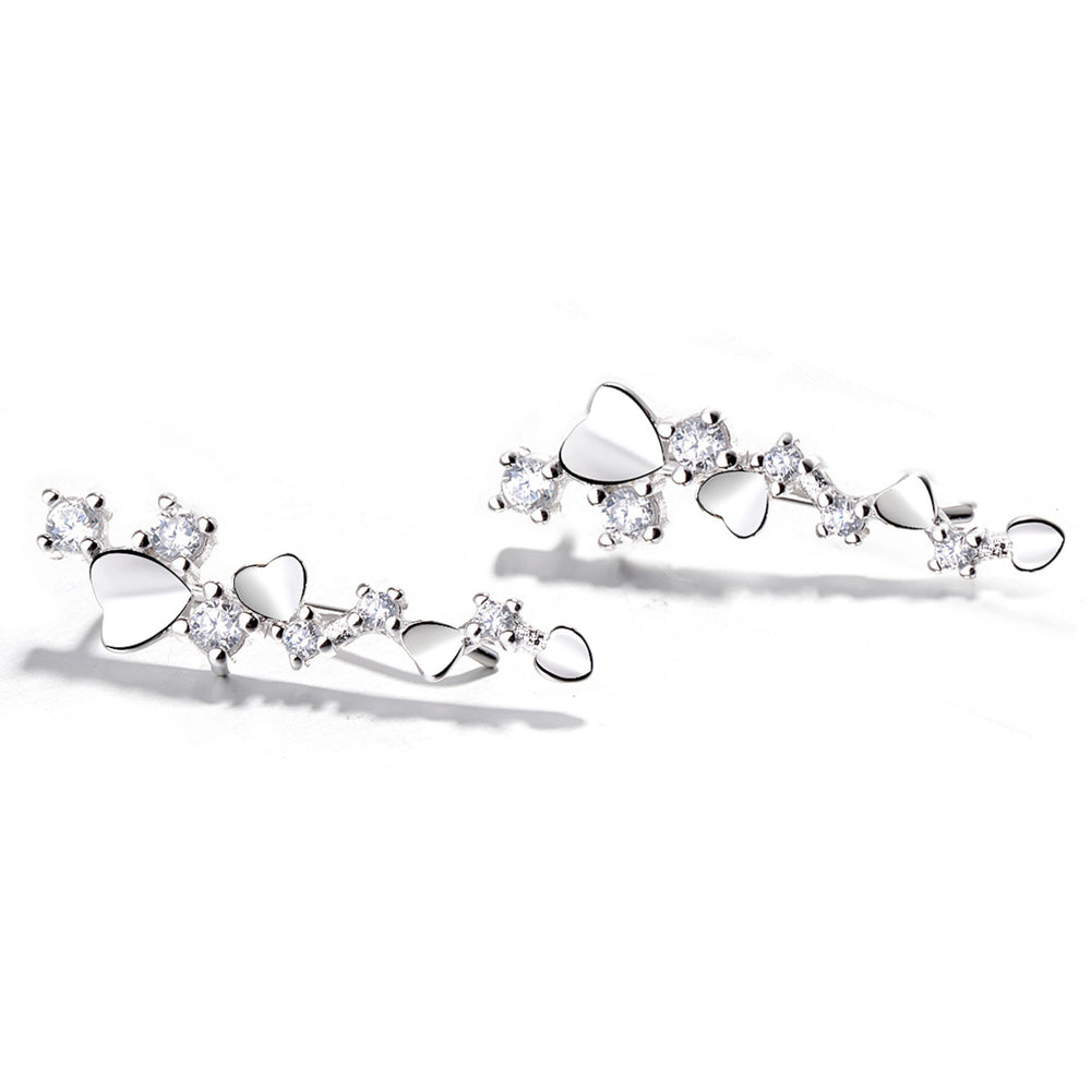 925 Sterling Silver Rhodium Plated CZ Heart Ear Cuffs for Women