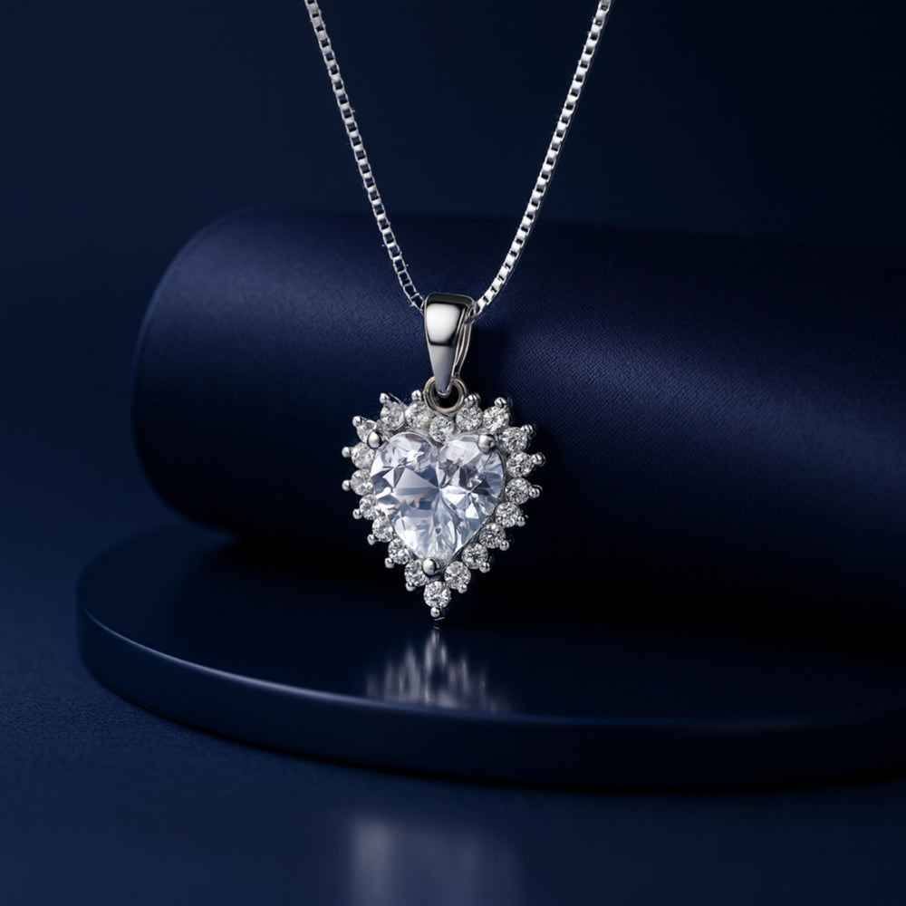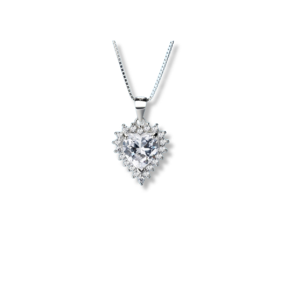 925 Sterling Silver Rhodium Plated CZ Heart Pendant Necklace