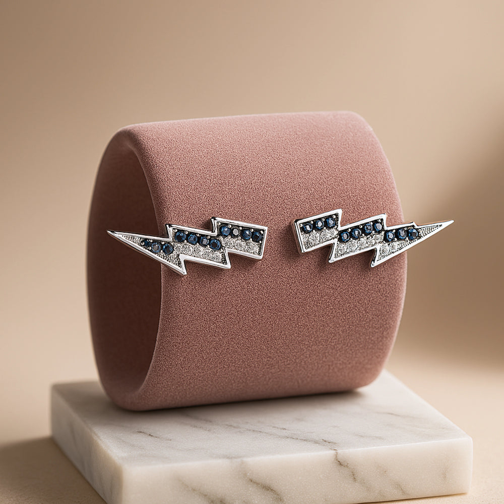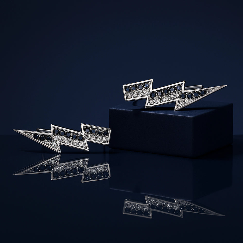 925 Sterling Silver Rhodium Plated CZ Lightning Bolt Ear Cuffs