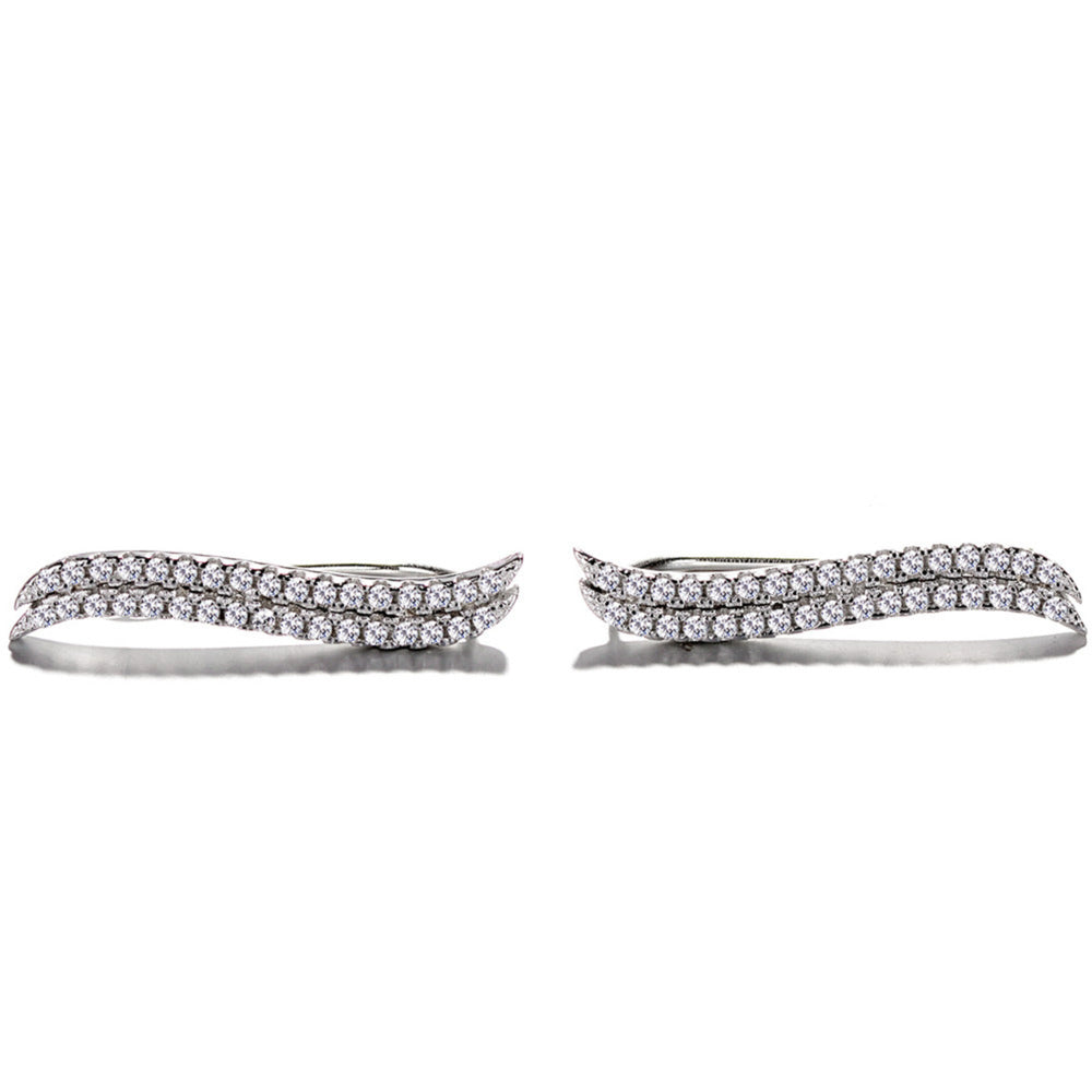 925 Sterling Silver Rhodium Plated CZ Wave Design Ear Cuffs