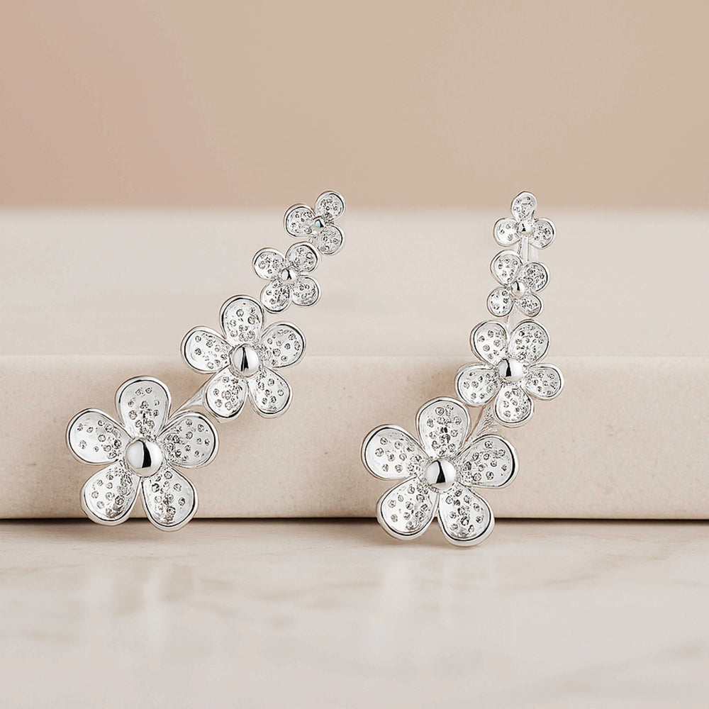 925 Sterling Silver Rhodium Plated Daisy Flower Ear Cuffs for Women