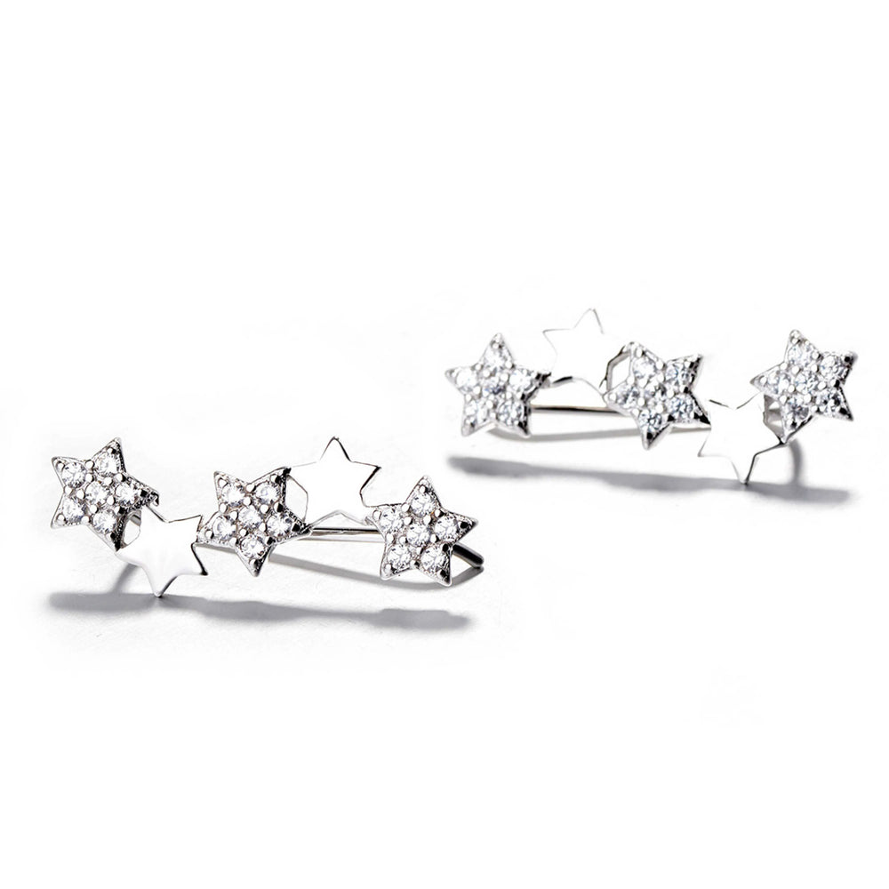 925 Sterling Silver Rhodium Plated Star Ear Cuffs with Cubic Zirconia – Celestial Climber Earrings