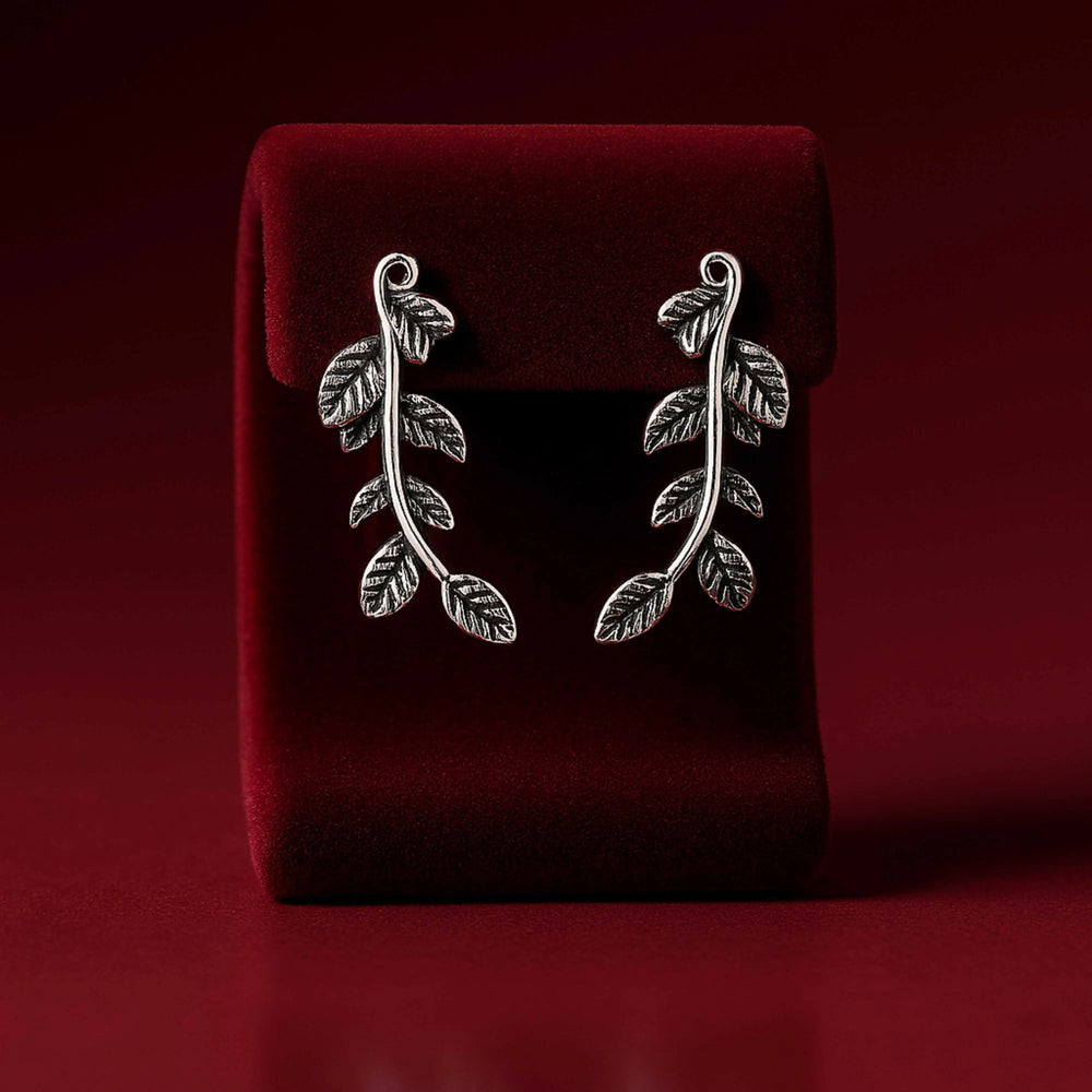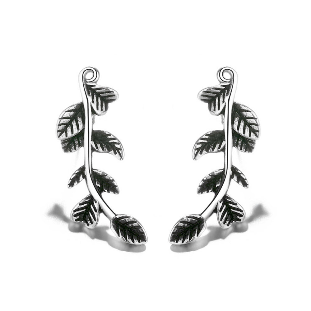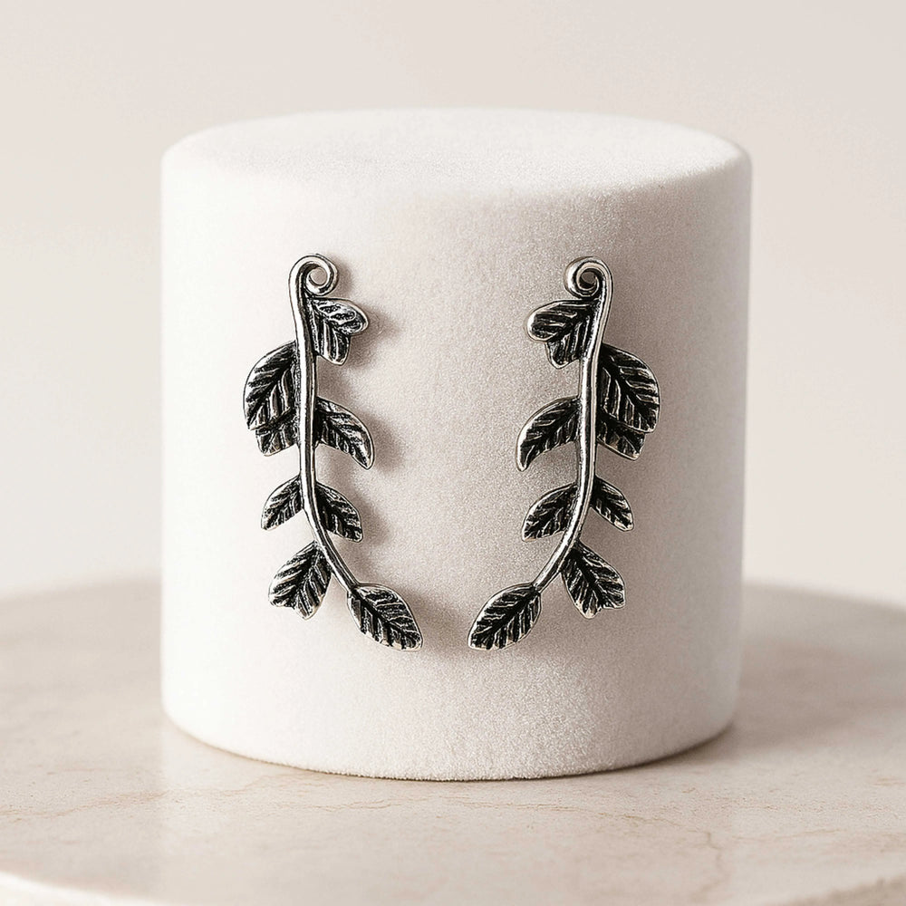 925 Sterling Silver Rhodium Plated Vine Leaf Ear Cuffs – Nature-Inspired Climber Earrings