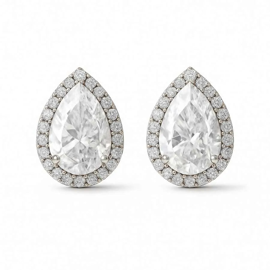 925 Sterling Silver Teardrop Stud Earrings | Rhodium Plated with Cubic Zirconia Halo for Women