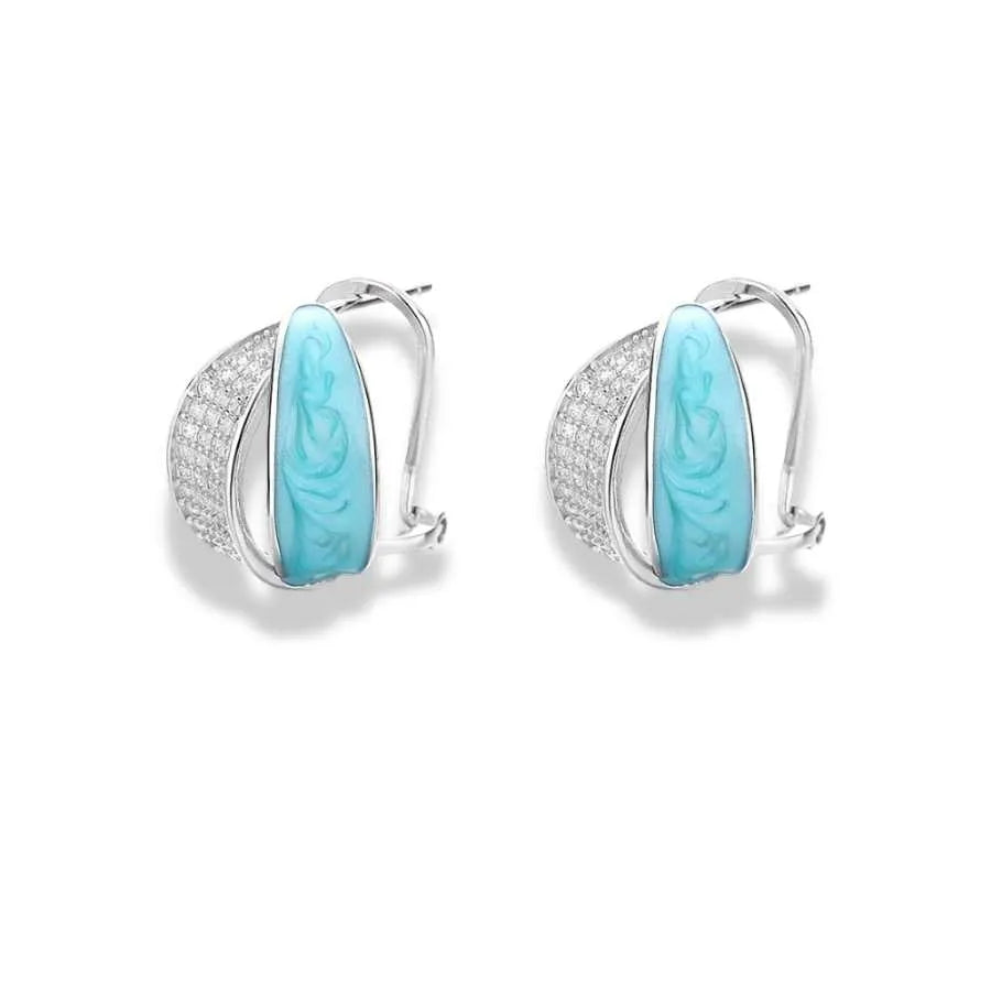 925 Sterling Silver Turquoise Earrings | Rhodium Plated Hoop Earrings with Cubic Zirconia