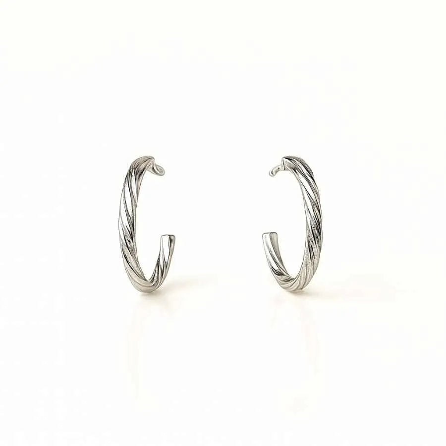925 Sterling Silver Twisted Hoop Earrings | Rhodium Plated Textured Small Hoops