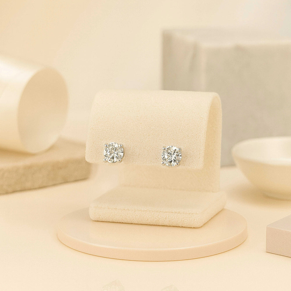 Classic Diamond Stud Earrings in White Gold – Timeless Round Cut