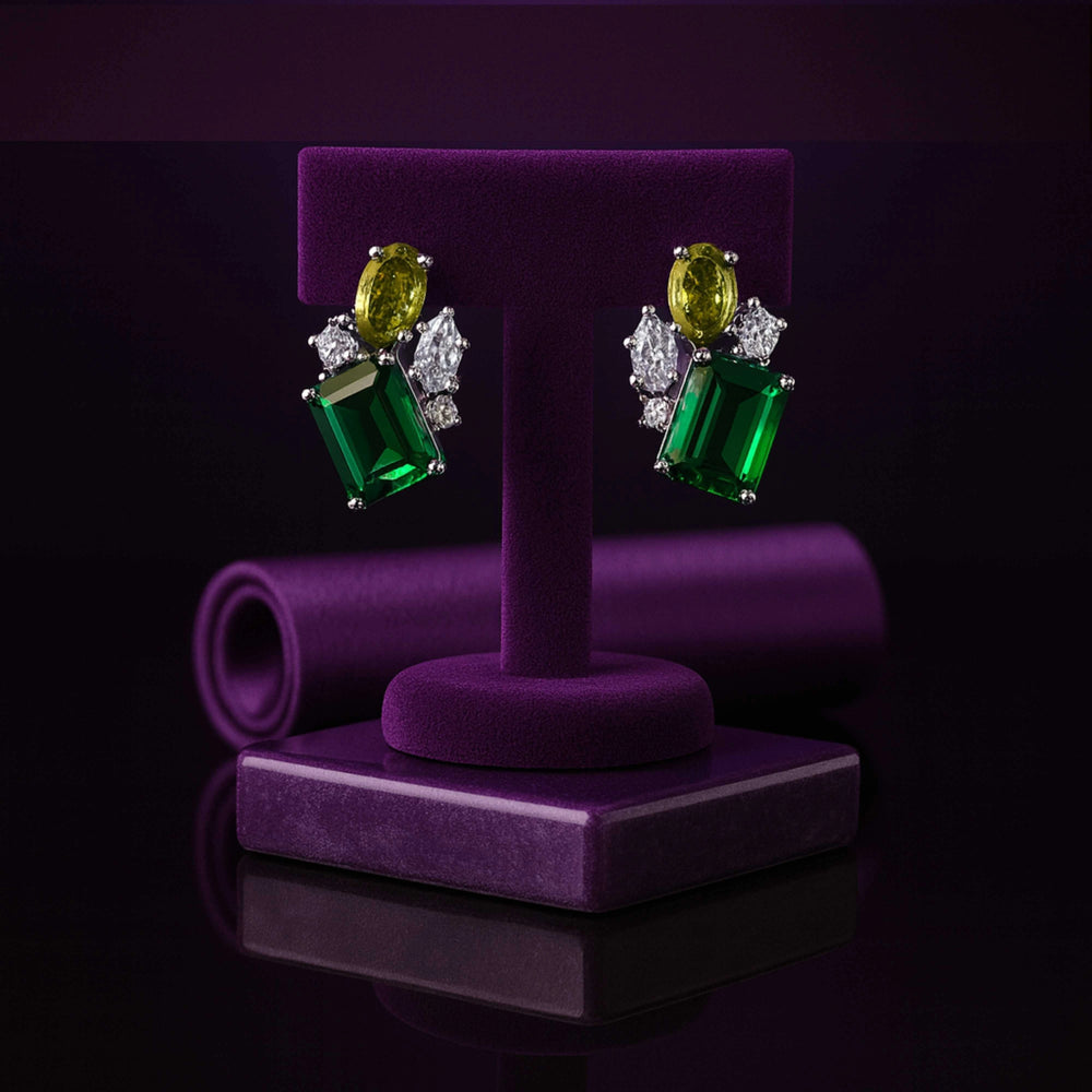 Emerald Cut Green & Yellow Gemstone Stud Earrings – Sterling Silver