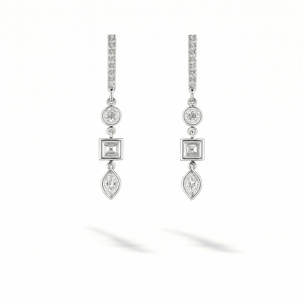 Sterling Silver Geometric Drop Earrings with Cubic Zirconia Accents