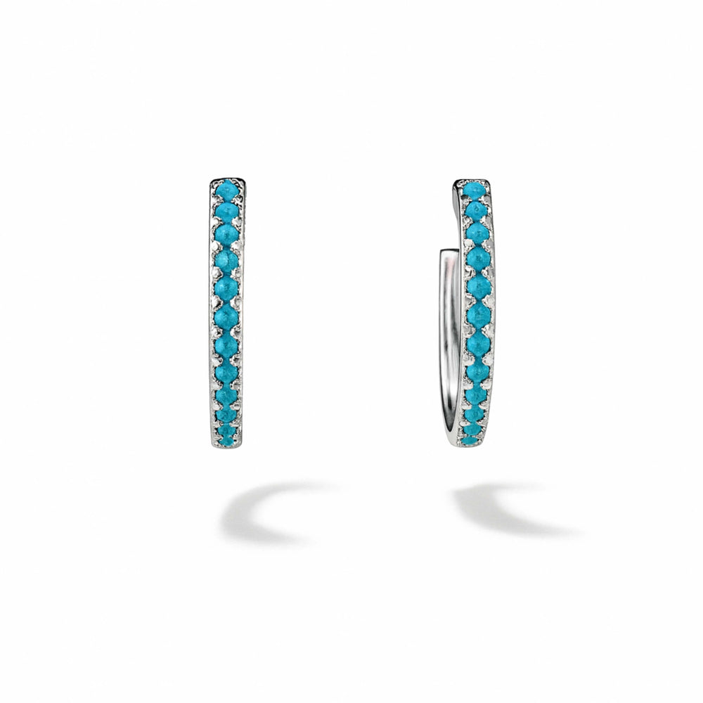 Sterling Silver Hoop Earrings with Turquoise Blue Gemstones