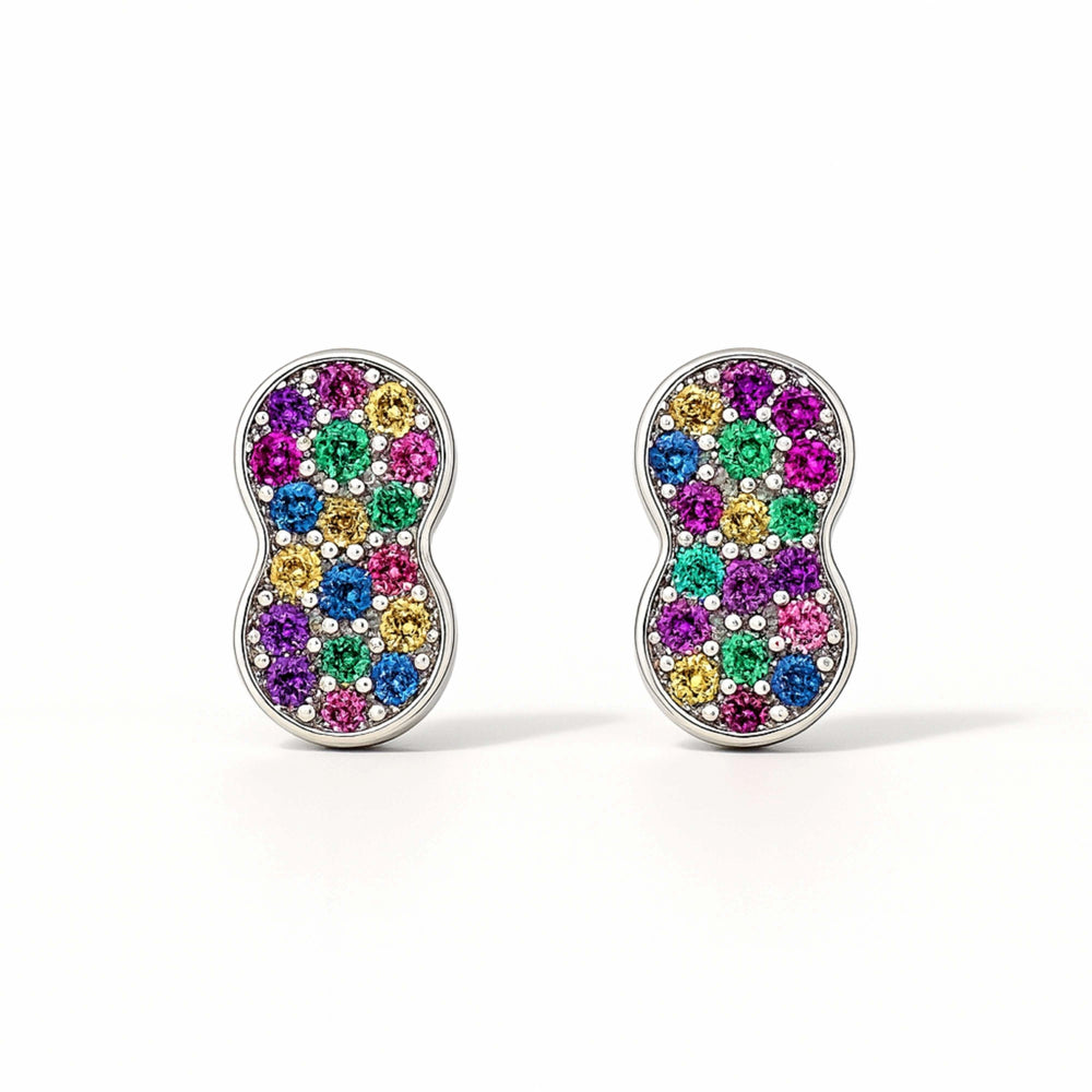 Sterling Silver Multicolor Crystal Stud Earrings – Vibrant Infinity Design